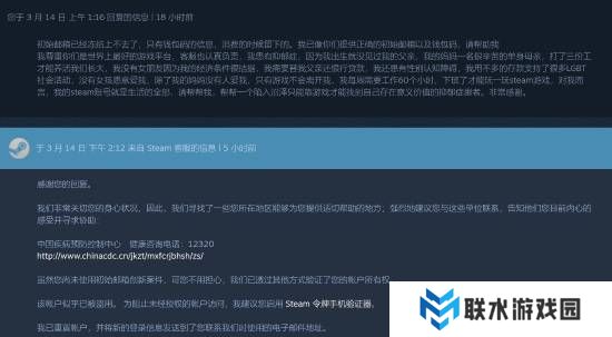 没想到小作文真的有用!Steam客服不仅快速帮他验证了账户所有权并重置账号,还关心他的心理问题,建议他去“中国疾病预防控制中心”寻求帮助。
