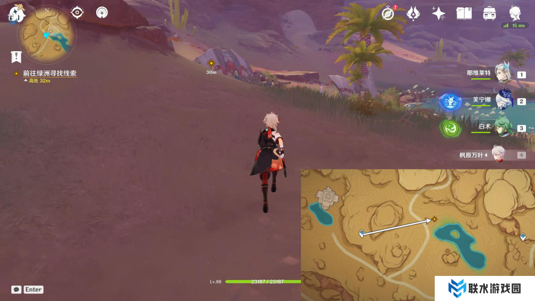 2、之后要前往阿如村,可以传送阿如村神像,与赛诺对话;