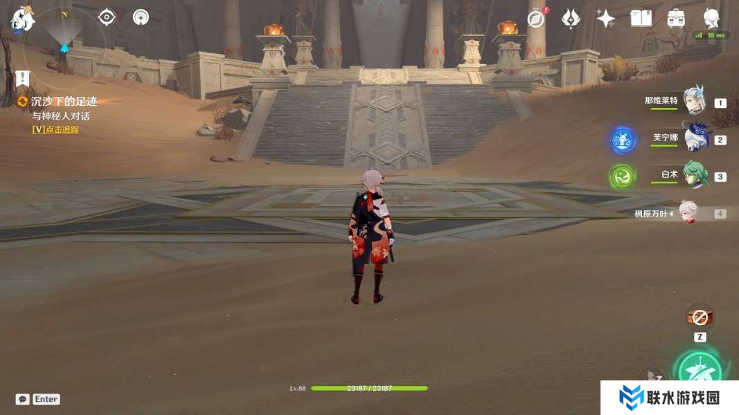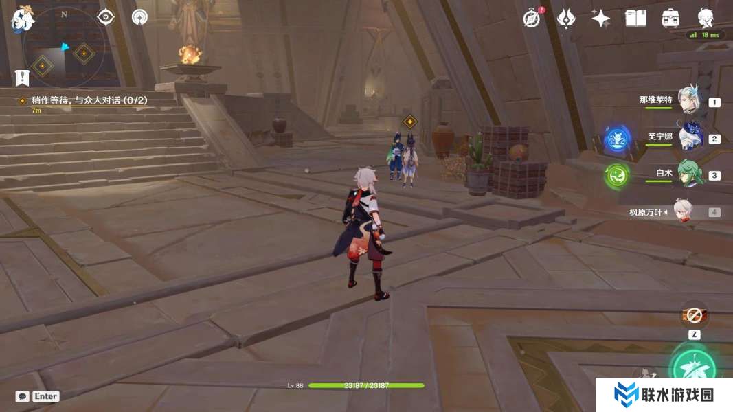 1、首先玩家需要传送喀万驿锚点,在这里与赛诺进行对话;