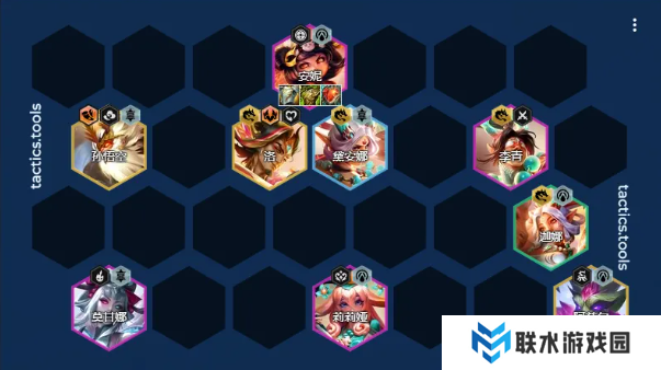 1、阵容组成:风女、黛安娜、莉莉娅、安妮、莫甘娜、李青、猴子、洛、沙皇