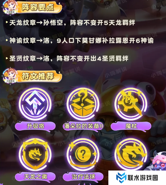 2、阵容羁绊:4天龙之子4神谕3圣贤1仙侣1齐天大圣