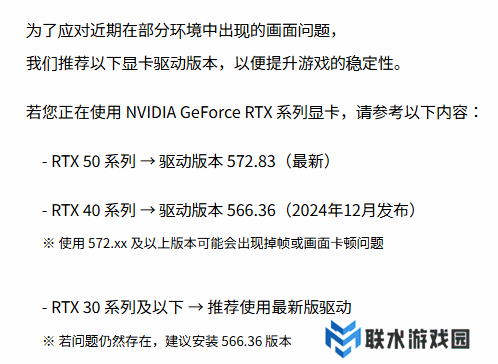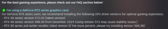 为此,开发者们纷纷发布公告,建议RTX 50 系列用户使用 572.83 版驱动,而 RTX 40 系列用户则应回滚至 566.36 版(发布于 2024 年 12 月)。此前已有不少玩家反馈,回滚至 566.XX 版本后,稳定性问题得到显著改善。