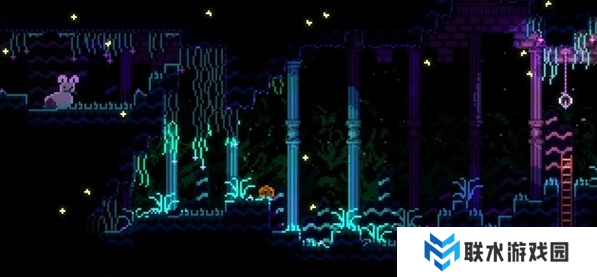 再向右切版,利用泡泡枪通过这个满是刺的跳跳乐房间,再向右切版即可找到兔子。需要注意的是,在前期刚获得泡泡枪时通过踩在泡泡上放下一个泡泡的同时再跳上去的进阶技巧即可获取这只兔子,但难度较高,建议后期获得无限泡泡枪后再来会简单一点。