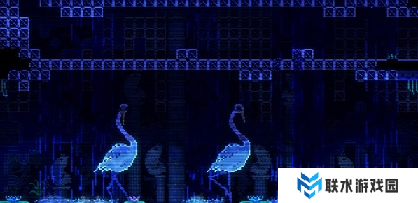 一路从荷叶跳跃经过两只鹤的场景,到达右侧场景后再通过泡泡跳上到右上角红框处隐藏。