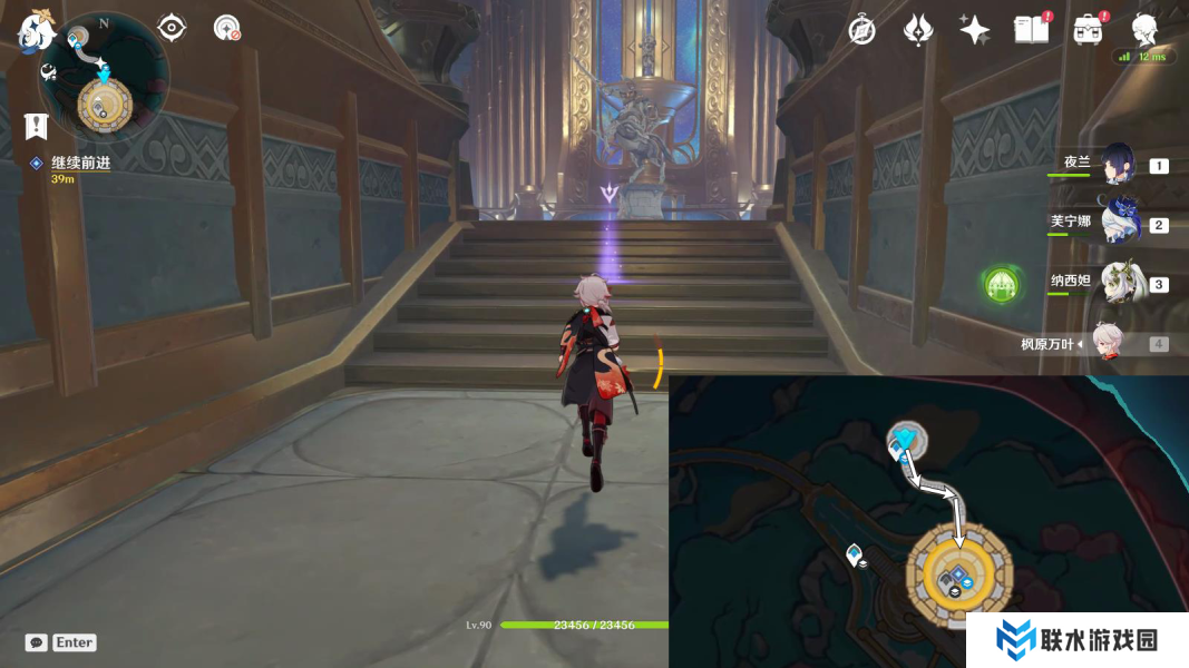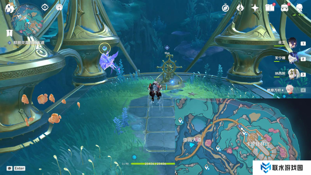 1、等玩家第三章「法沙利亚狂想曲·通往卡皮托林的阶梯」后,传送黄金宫殿锚点,往地图的西北方向游,启动机关;