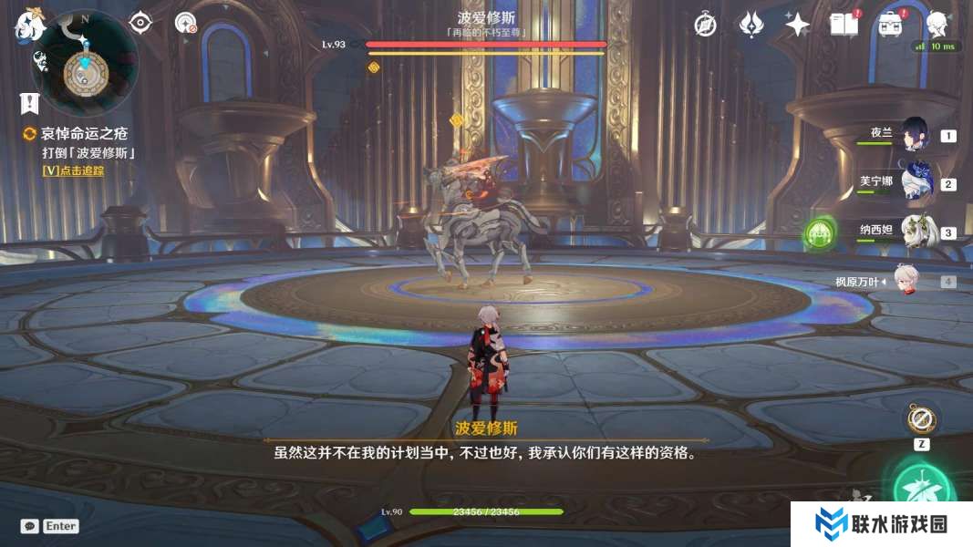 4、玩家需要打倒「波爱修斯」,这里建议配队中有岩系或大剑角色破岩盾,需对话3次后打倒;