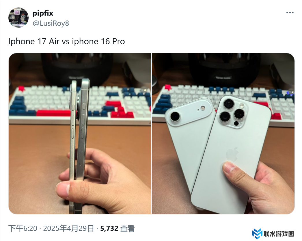 本站 5 月 9 日消息,消息源 @LusiRoy8 今天(5 月 9 日)在 X 平台发布推文,分享了一段视频,展示了苹果 iPhone 17 Air 戴上手机壳后的效果,依然要比 iPhone 17 Pro Max(机模)更薄。