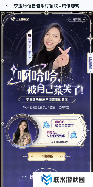 王者荣耀游戏中玩家是可以设置语言包的,然后在对局中就可以快捷使用,最近有一个“李玉玲语音包”可以免费获取,那么怎么获得呢,可以参考小编接下来给大家带来的详细介绍。