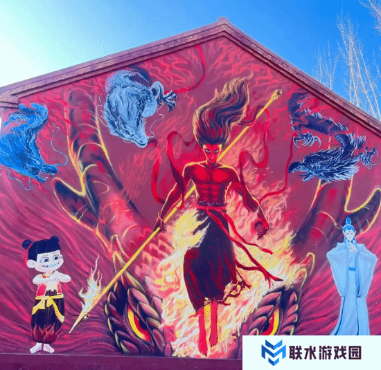 该壁画高10米、宽8米,由90后墙绘师沈靖宇历时7天完成,在创作过程中,每画一部分都要上下脚手架反复调整。画面中央是哪吒,混天绫飘逸,身后是腾空的巨龙,旁边还有敖丙。整个画面气势磅礴,吸引了上千人前来拍照。