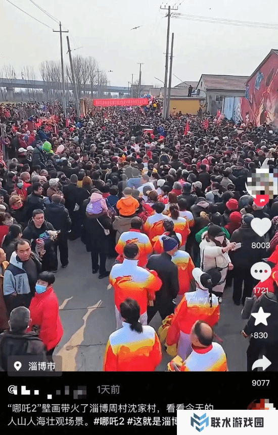 网友拍摄的视频显示,山东淄博市周村区沈家村,一幅哪吒墙绘前人山人海。