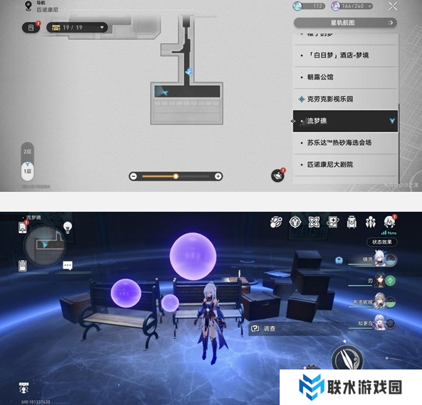 1、玩家传送到流梦礁的第一个从锚点,传过了然后向后走,在标点位置会有紫色的泡泡点击调查即可(会必定进入战斗);