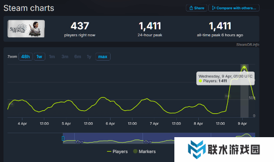 根据SteamDB数据显示,本作正式发布首日Steam在线玩家峰值来到1411人,截止至发稿时,仅剩437人还在游戏中。不过考虑到本作首发加入XGP,可能对Steam平台的玩家数有一定影响。