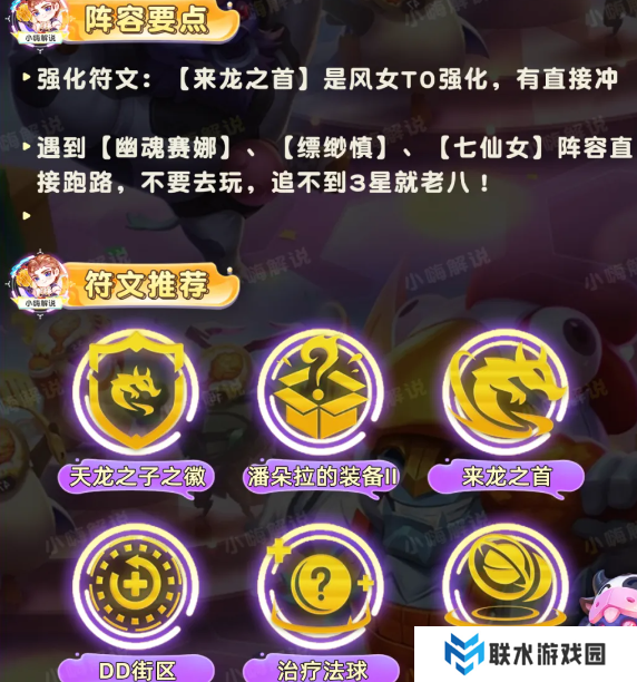 阵容前提:【来龙入首】效果是天龙之子羁绊启动后,能够额外造成20%的真实伤害。