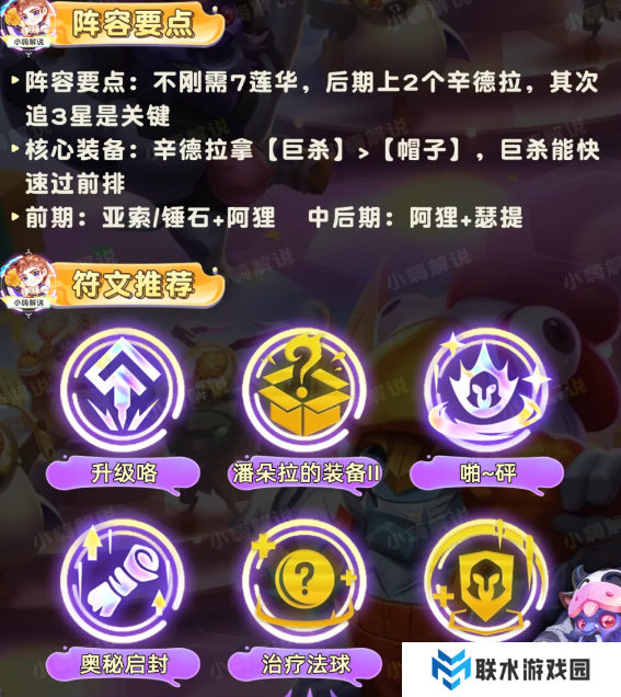 云顶之弈s11有很多新阵容,其中“莲华辛德拉”是新版本的上分阵容,这个阵容以辛德拉为主,比较容易拿到三星,那么这个阵容该怎么玩呢,可以参考小编接下来给大家带来的详细介绍。