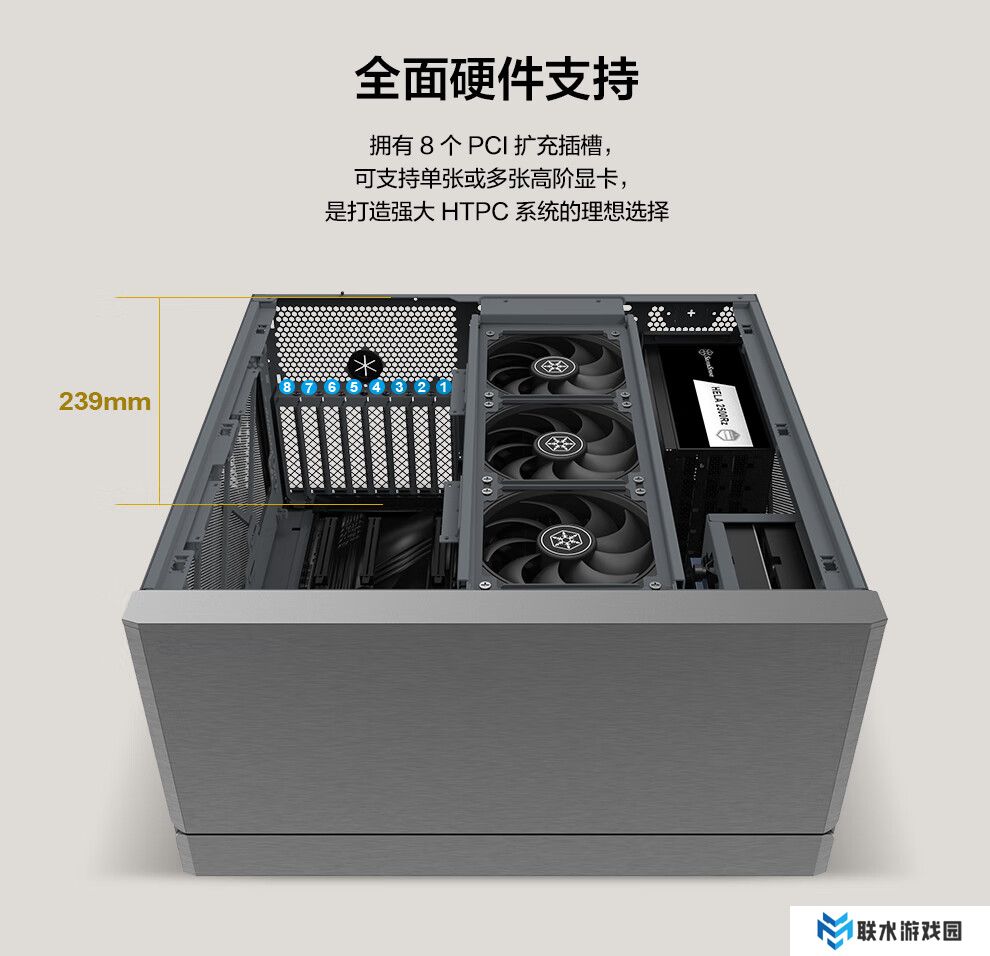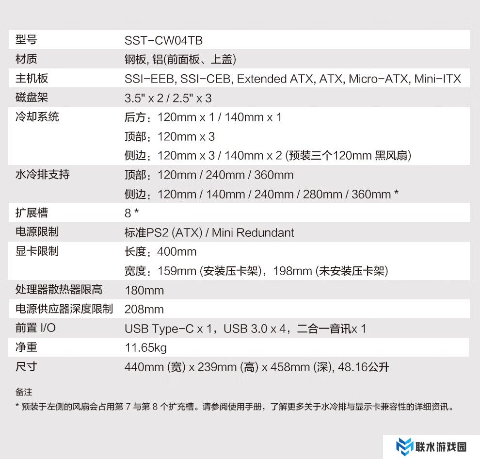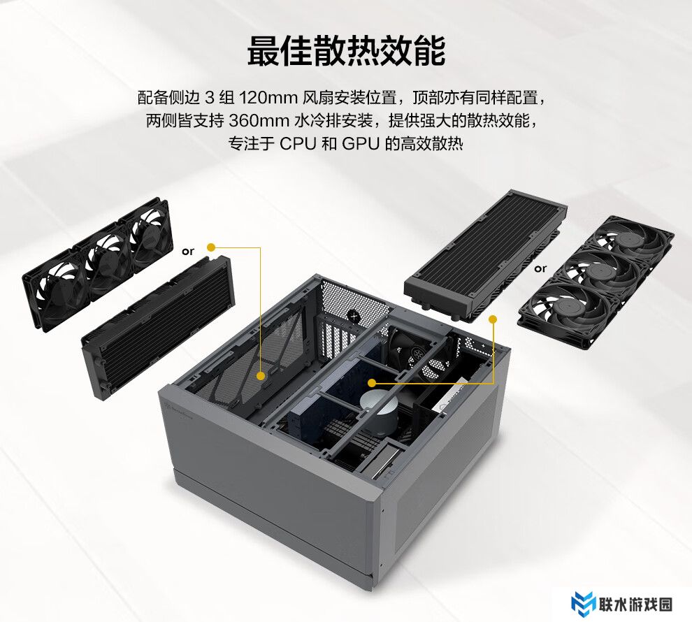 京东银昕 CW04 旗舰型 HTPC 卧式机箱 E-ATX / 多显卡 / 双 360 水冷 / 标配 3 风扇 / Type-C / 加厚铝面板顶盖 黑色 ATX 机箱 3599 元直达链接银昕 Crown 04 采用全钢机身搭配拉丝铝面板,以相对简洁的外观塑造出高贵典雅的质感。