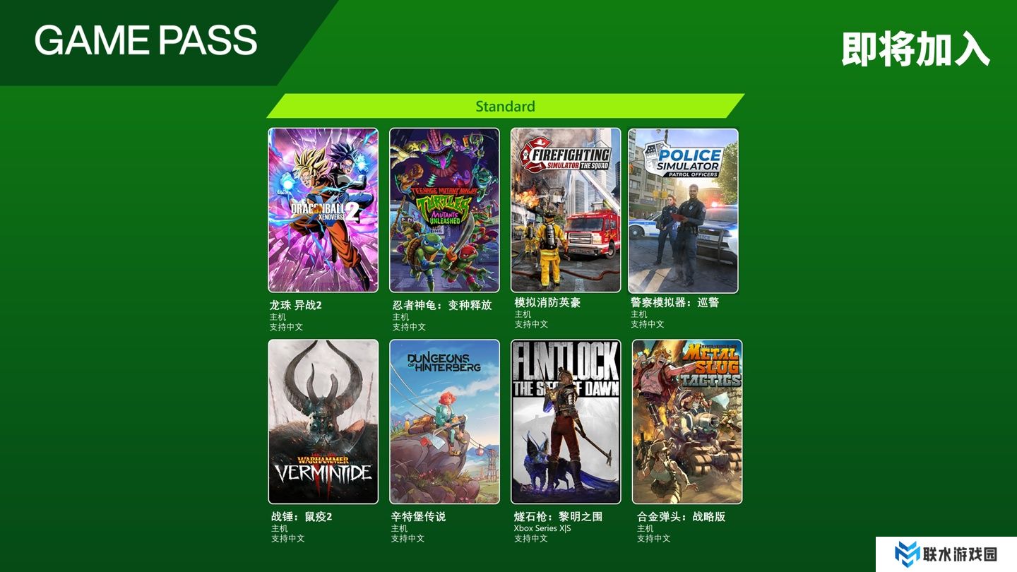 Game Pass Standard:《龙珠异战 2》、《忍者神龟:变种释放》、《模拟消防英豪》、《**模拟器:巡警》、《战锤:鼠疫 2》、《辛特堡传说》、《燧石枪:黎明之围》、《合金弹头:战略版》