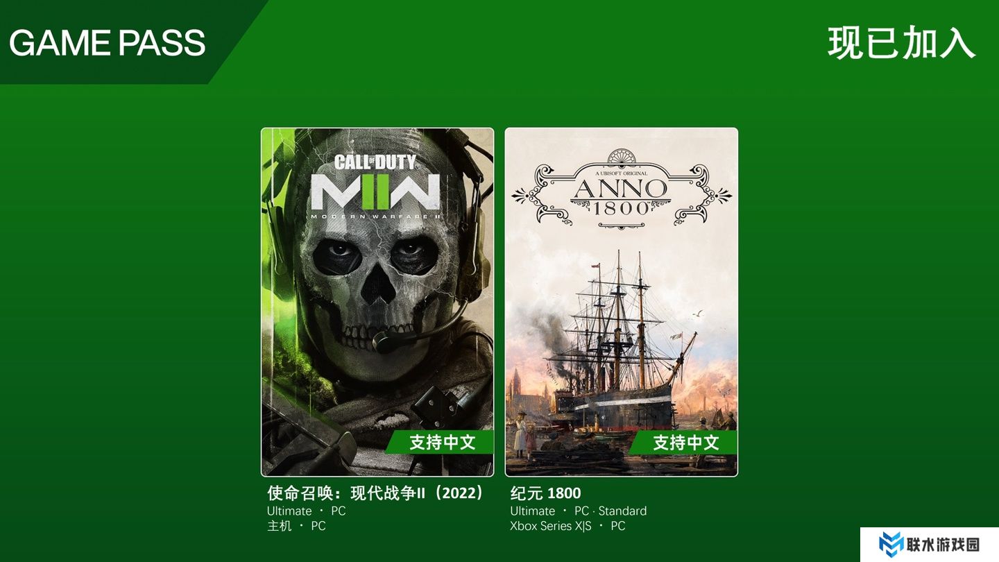 据此前报道,《使命召唤:现代战争 II(2022)》、《纪元1800》两款游戏现已加入 Game Pass Ultimate・PC服务,而《纪元1800》同时加入Game Pass Standard服务。