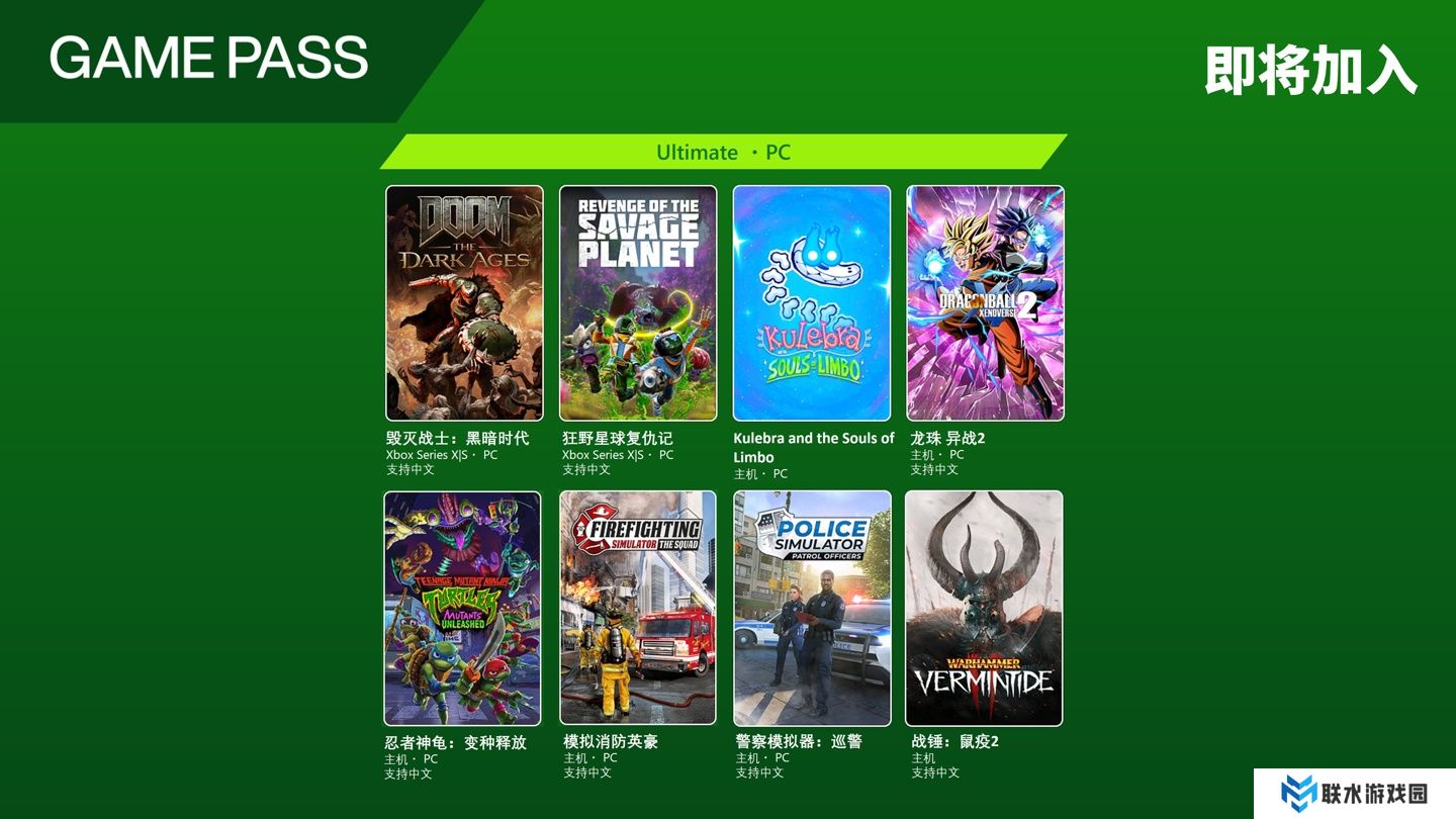 Game Pass Ultimate・PC:《毁灭战士:黑暗时代》、《狂野星球复仇记》、《Kulebra and the Souls of Limbo》、《龙珠异战 2》、《忍者神龟:变种释放》、《模拟消防英豪》、《**模拟器:巡警》