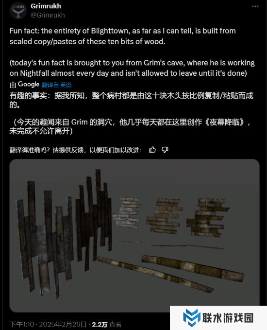 近日,《黑暗之魂:黄昏》大型MOD的制作人@Grimrukh在推特分享了《黑暗之魂》的趣事。据他所说,整个“病村”场景都是由十块木头素材按比例复制和粘贴构建而成的!