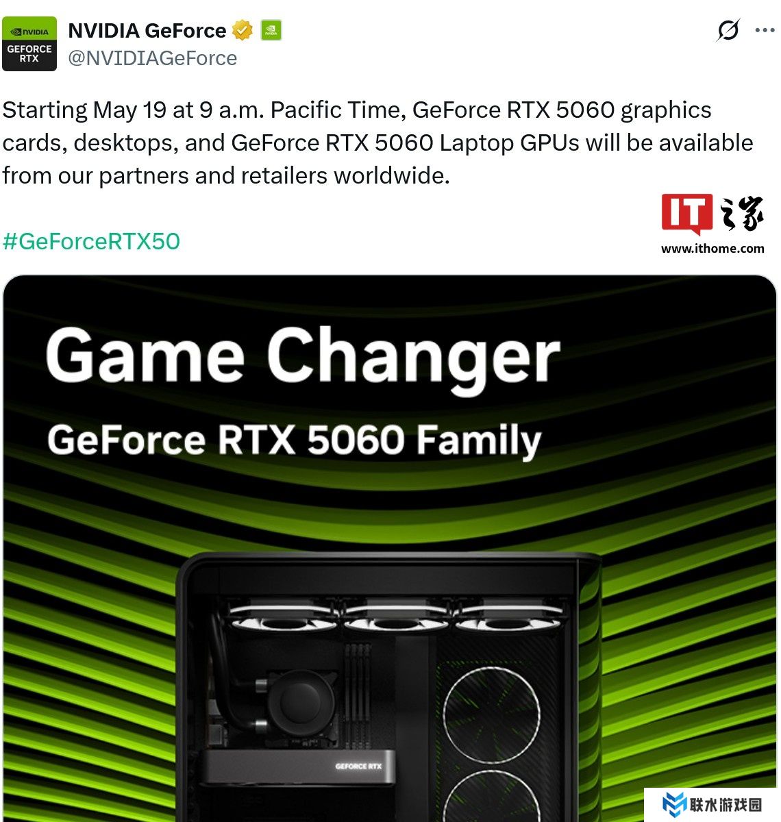 本站 5 月 6 日消息,英伟达官方于北京时间今日 21:00 宣布,GeForce RTX 5060 显卡和笔记本电脑 GPU 将于太平洋时间 5 月 19 日 09:00 开售。由于太平洋时间 (PT) 目前对应 UTC-7 的太平洋夏令时 (PDT),因此国内的开售时间为北京时间本月 20 日 00:00。