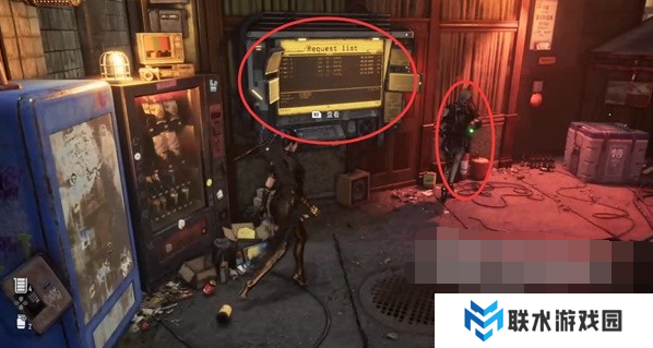 1、玩家前往【希雍城的告示板】旁边找到npc“情报商”,先和他随便买东西来提升好感度;