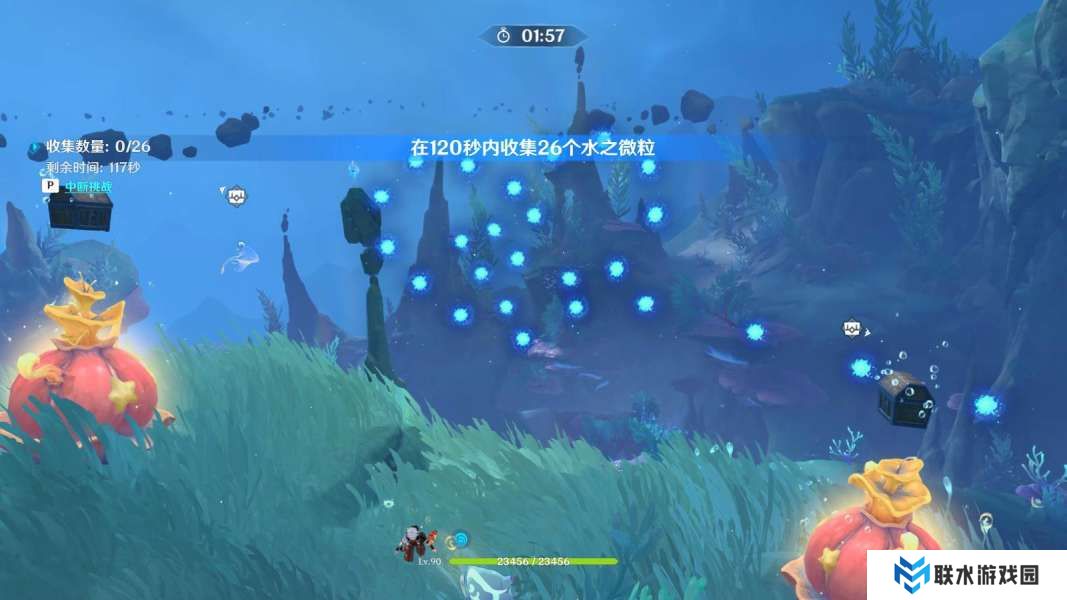 限时挑战:在120秒内收集26个水之微粒;(此处收集一箭穿心的动画很不错)