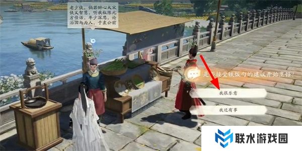 2、在这个桥上和NPC进行对话,可以得知任务的内容是要烹饪;