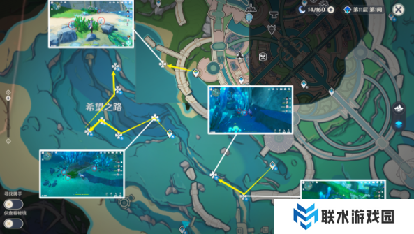 希望之路的路线:在采集完第一个点后,向地图东南看,蓝色海草中藏着第二个点(该处较为隐蔽