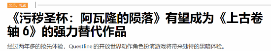 媒体表示,《污痕圣杯:阿瓦隆的陨落》凭借其深邃世界观、自由角色构建系统,以及对亚瑟王传说的全新演绎,提供了远超常规的体验。如果你期待一款兼具探索乐趣、黑暗氛围与战斗深度的RPG,不妨关注这款作品。