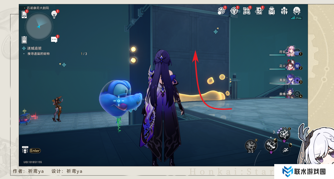 (4)原路返回,开启南边的机关,补充梦泡,再操控前方的机关
