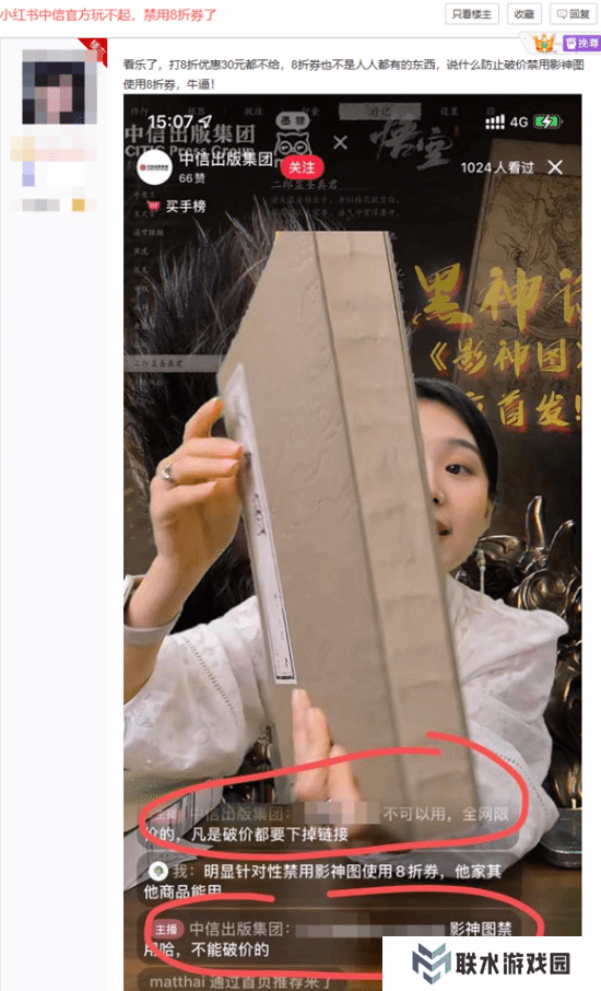 据贴吧吧友发布的信息报道,小红书中信商城官方在直播讲解影神图实体版时表示,其8折卷不能用于购买小红书中信商城里的影神图实体版,理由为“防止破价”。值得一提的是,在同日早些时候,小红书平台的影神图由于不明原因被下架,截至发稿前已经恢复。