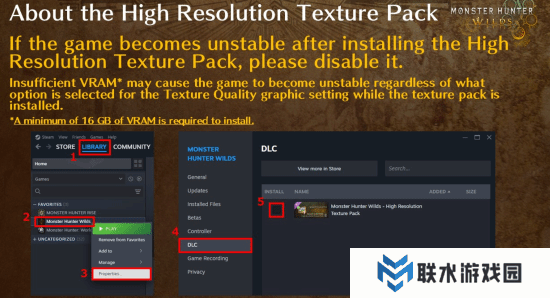 据悉,高分辨率纹理包需要16GB以上的显存,如果显存不足,可能无法显示高分辨率纹理,并且游戏的运行和视觉效果会变得不稳定。对此官方建议,如果遇到类似问题,请尝试按照以下步骤禁用高分辨率纹理包: