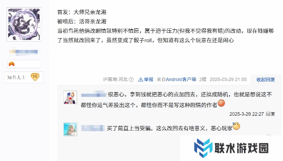 然而,在3月28日的游戏更新后,官方将此前的争议剧情重新添加进了游戏中。再次引发了玩家们的不满。