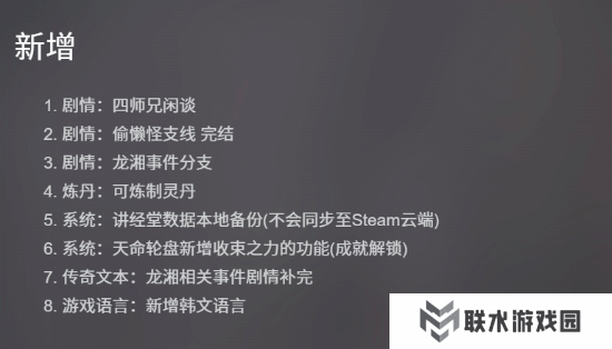 武侠RPG游戏《活侠传》在3月18日发布了全新更新,完结“偷懒怪”支线任务。扩充龙湘事件分支剧情。新增四师兄闲谈剧情。此外还加入了炼丹功能,扩展了天命轮盘。并为游戏引入了韩文语言支持。