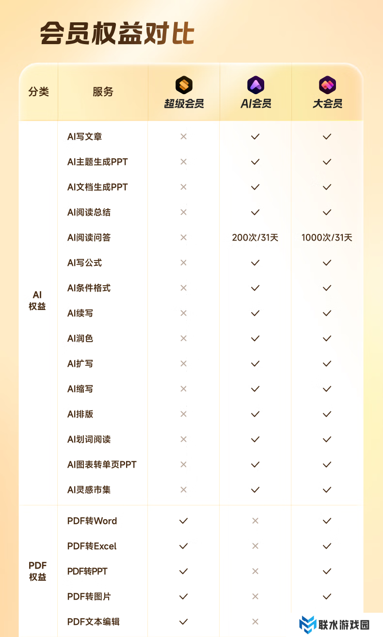 同时还推出了大会员,包含 WPSAI 会员和原有超级会员 Pro 的功能,连续包月 35 元 / 月。