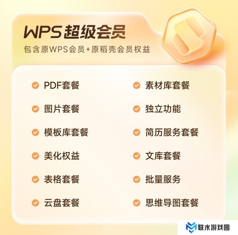 WPS 超级会员基础套餐比较适合用户个人日常使用,可满足办公以及学习的日常需求,会员权益包括 PDF 权益包、图片权益包、思维导图权益包、模板库权益包、素材库权益包等。