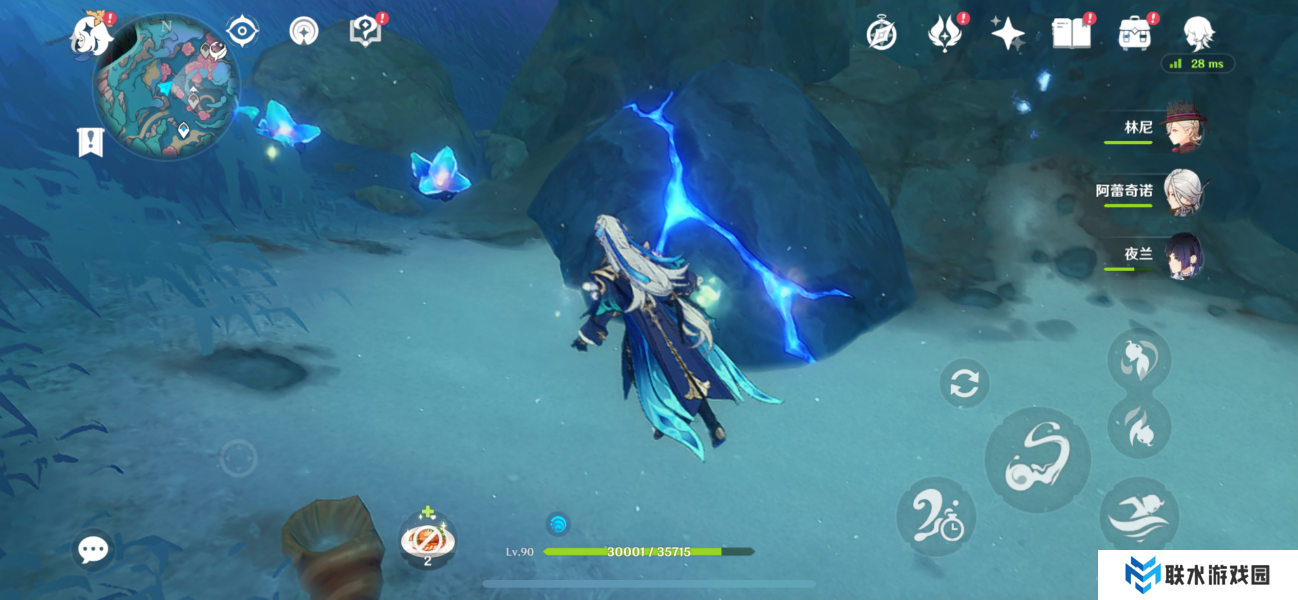 1、利用水母能力先击碎附近的岩石,岩石击碎后,鳗鱼就会出现;