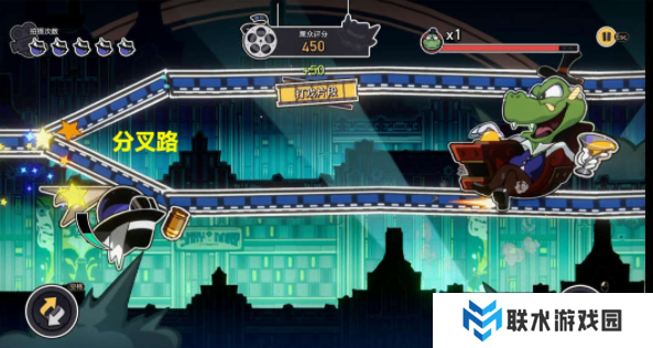 3、另外注意遇到分叉路时,要跟着石头老板的轨道走,不然就会打不到硬币了。