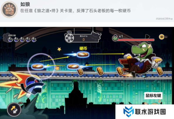 成就描述:在任意《狼之道•终》关卡里,没有反弹一次硬币攻击就打败了石头老板。