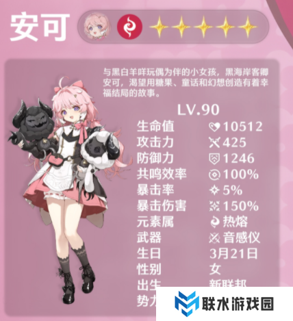 五星热熔元素属性,LV.90生命值10512,攻击力425,防御力1246