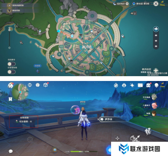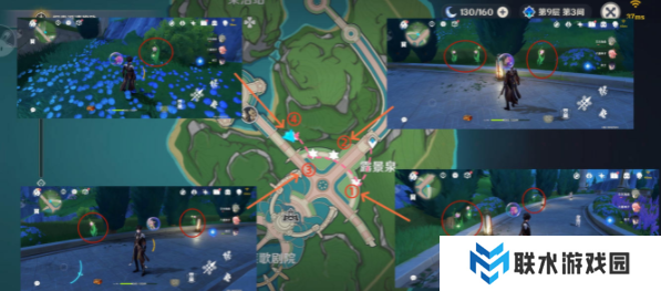 传送至枫丹城左边的传送点,按照顺序采集,共10朵。