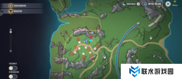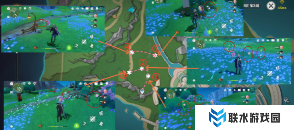 传送至下图传送点,按照顺序采集,分在两个图,共15朵。