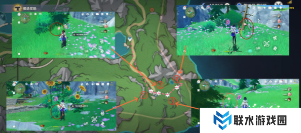传送至该区域右下角传送点,顺序采集,共4朵。
