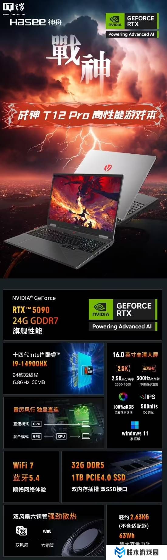 据IT之家报道,神舟旗下战神T12 Pro笔记本于3月31日晚9点首销,其采用“i9-14900HX+32GB RAM+1TB SSD+RTX5090”规格,定价为17999元,国补后15999元。