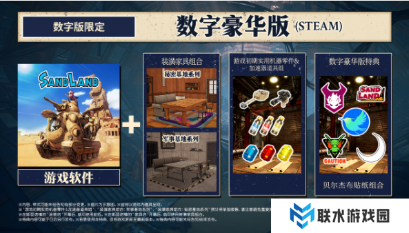 ※"游戏初期实用机器零件&加速器道具组"、"装潢家具组合:秘密基地系列"、"装潢家具组合:军事基地系列"预计将单独贩卖,请注意避免重复购买。