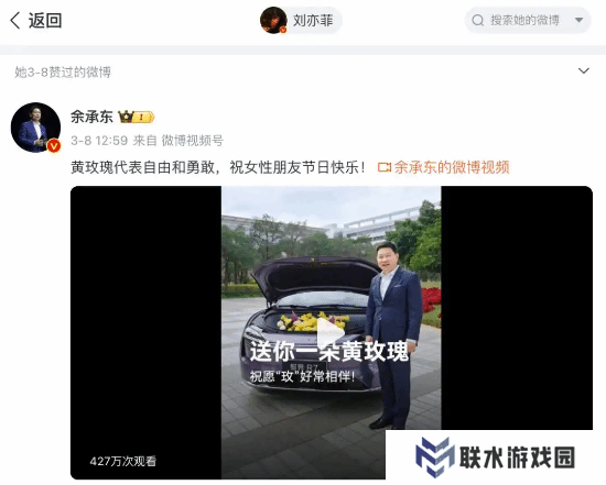 据此前报道,3月8日,有网友发现,演员刘亦菲在微博最新关注了华为常务董事余承东,并点赞余承东介绍智界R7玫瑰车的视频:“黄玫瑰代表自由和勇敢,祝女性朋友节日快乐!”