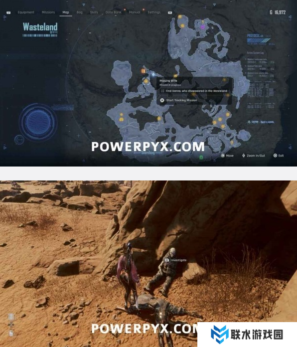 1、接取任务后,前往废土找到一位名叫唐娜的人,在荒原第一个营地相反的路上,可以找到几具尸体;