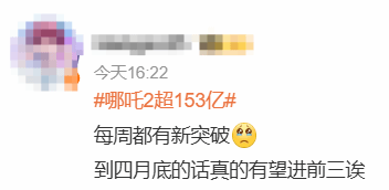 除了像之前破纪录时一样的祝贺以外,网友们也开始探讨起了本片的极限,相对于上映首月,现在电影的票房虽然还在节节高升,但增长的速度已经大不如前,不过还是据网友表示还是会有很多人去线下电影院观看《哪吒2》,不少人都认为截止到4月底,该片有望进入全球票房前三。