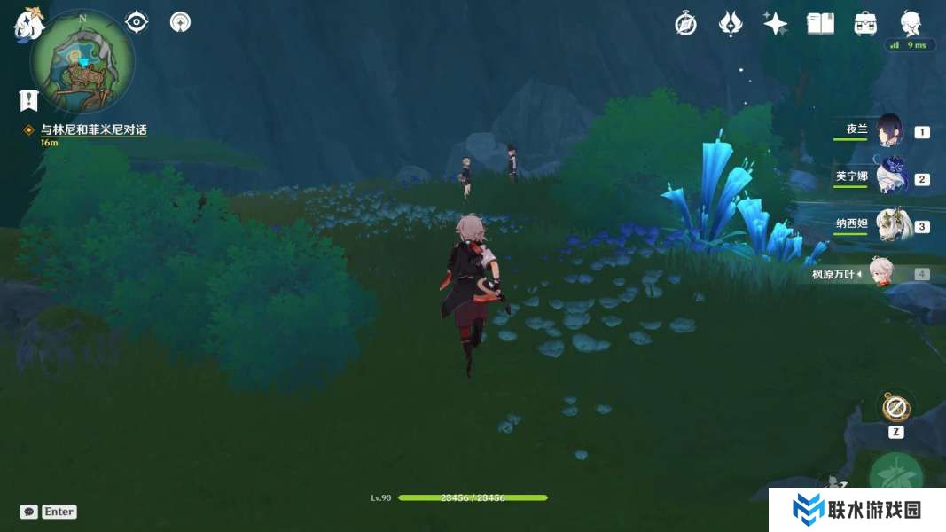 7、然后玩家要与林尼和菲米尼对话,往地图的西北方向走,在这里与其对话;