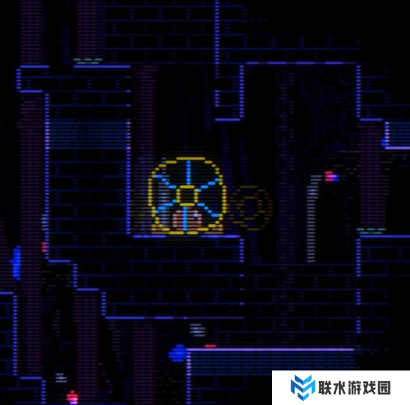 5、向右切版两次后,来到如图位置,这里开紫外线可以再次看到陀螺符号,但中间有玻璃墙分隔开(图中红框部分),曼狄柯的激光可以打碎这里的玻璃墙,之后使用陀螺打开右下隐藏墙,会出现一个轮子底座和一个曼狄柯图案的滑块。